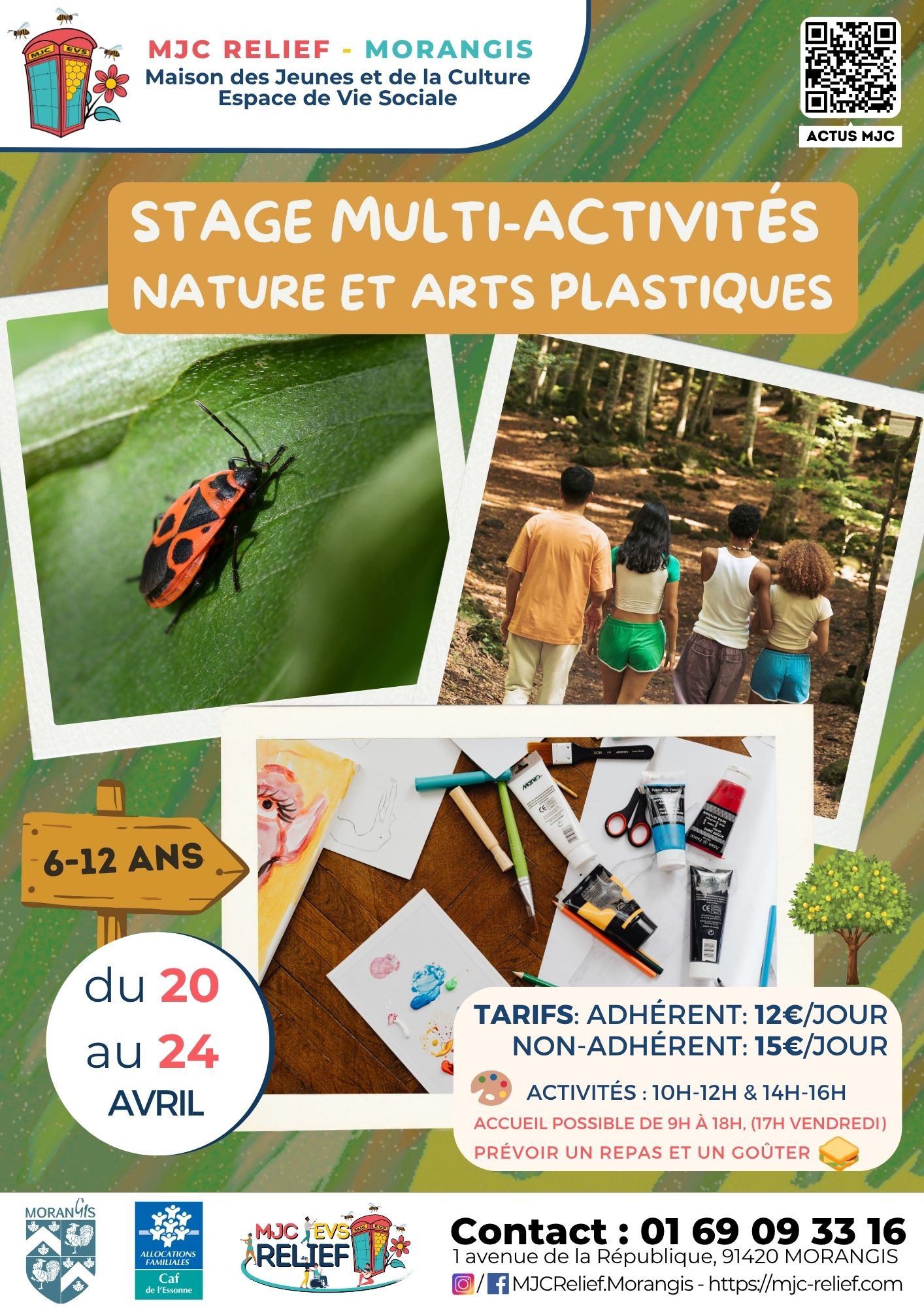 Pour ces vacances de printemps, la MJC propose un stage  “Arts plastique et Nature” ! Sur une demi-journée, les enfants pourront s’initier aux différentes techniques d’arts plastiques 👨🏽‍🎨, l’autre demi-journée sera consacrée aux sorties nature🏞️ (forêts, parcs, courses d’orientation…) et autres jeux (style fort Boyard en équipe…).