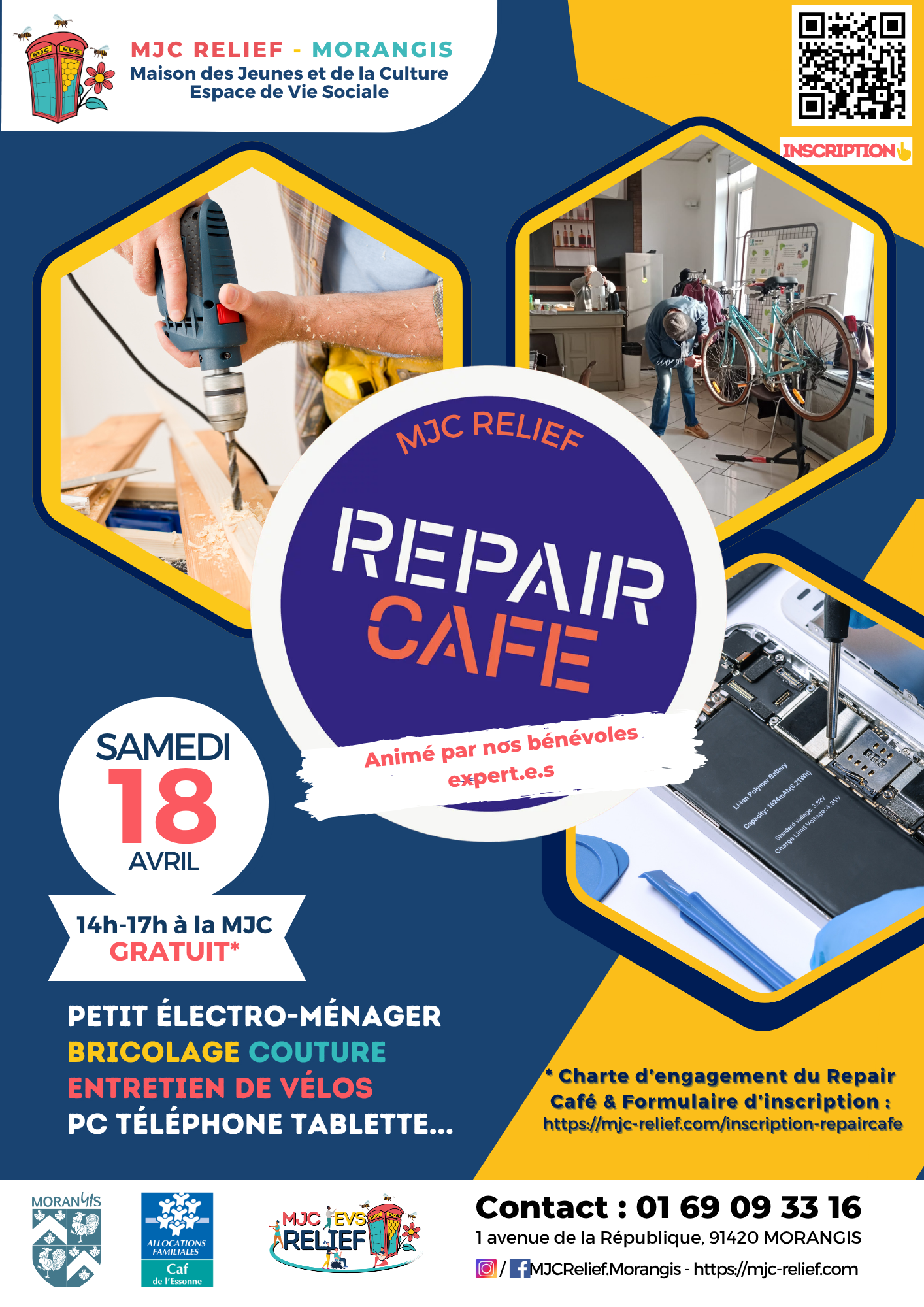 👨👩👧👦 Public : Tout public (sur inscription – merci de bien lire la charte du Repair Café avant de vous inscrire)