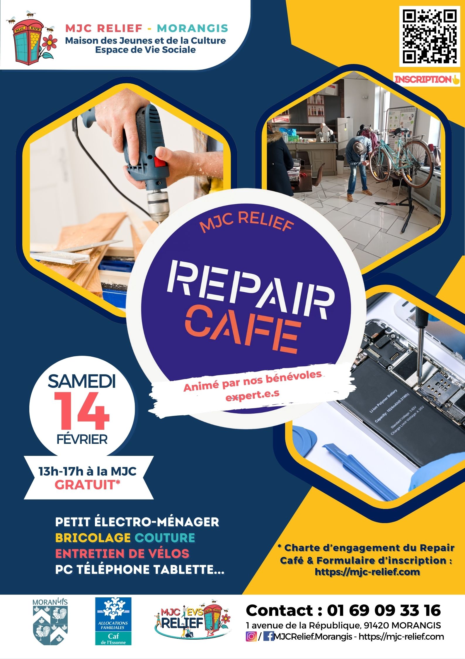 👨‍👩‍👧‍👦 Public : Tout public (sur inscription – merci de bien lire la charte du Repair Café avant de vous inscrire)