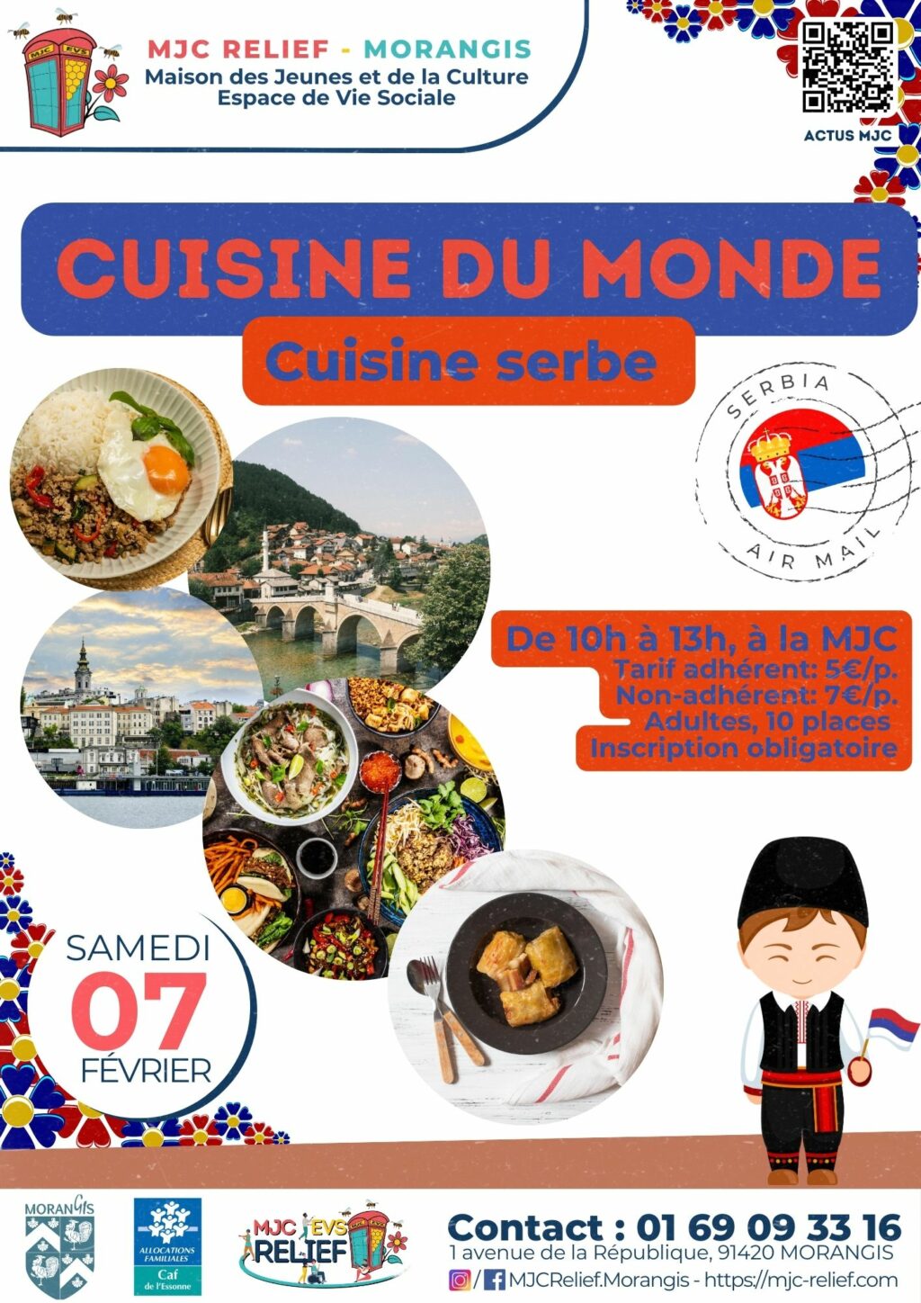 Samedi 7 février, de 10h à 13h, à la MJC Le principe : préparer ensemble un plat du monde accompagné par une personne qui, ce jour-là, est la « cheffe de cuisine ». Cette fois-ci, vous partirez à la découverte des plats typiques de la Serbie ! 😋 🕑 Horaires : de 10h à 13h 📍 À la…