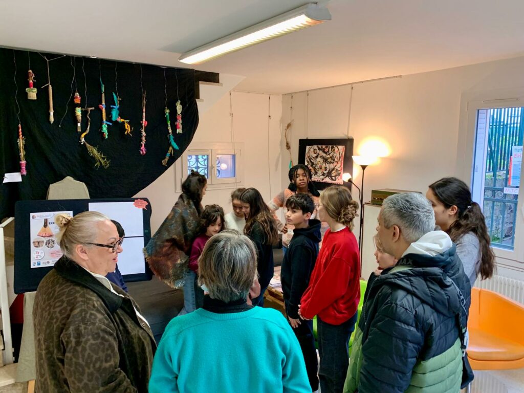 Les enfants du cours de dessin et des loisirs créatifs ont eu l’occasion de rencontrer le 28 Novembre l’artiste Aléas (qui exposent actuellement au Café Curieux (n’hésitez pas à vous y rendre, ça vaut le coup d’œil 👀)).